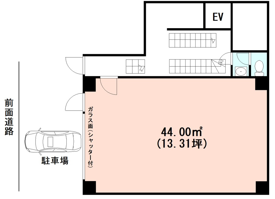| 特色 | 保証会社利用必須、男女別トイレ(2F共用部)、飲食不可、駅至近、エアコン(残置物)、24時間使用可、シャッター、天高:3,430mm(梁下:3,130mm)、地下物件、 | ||